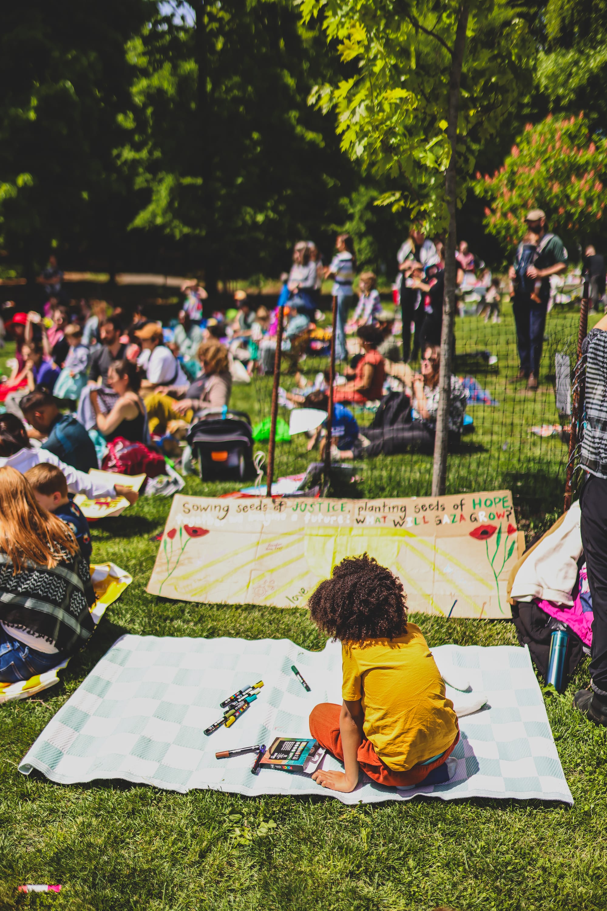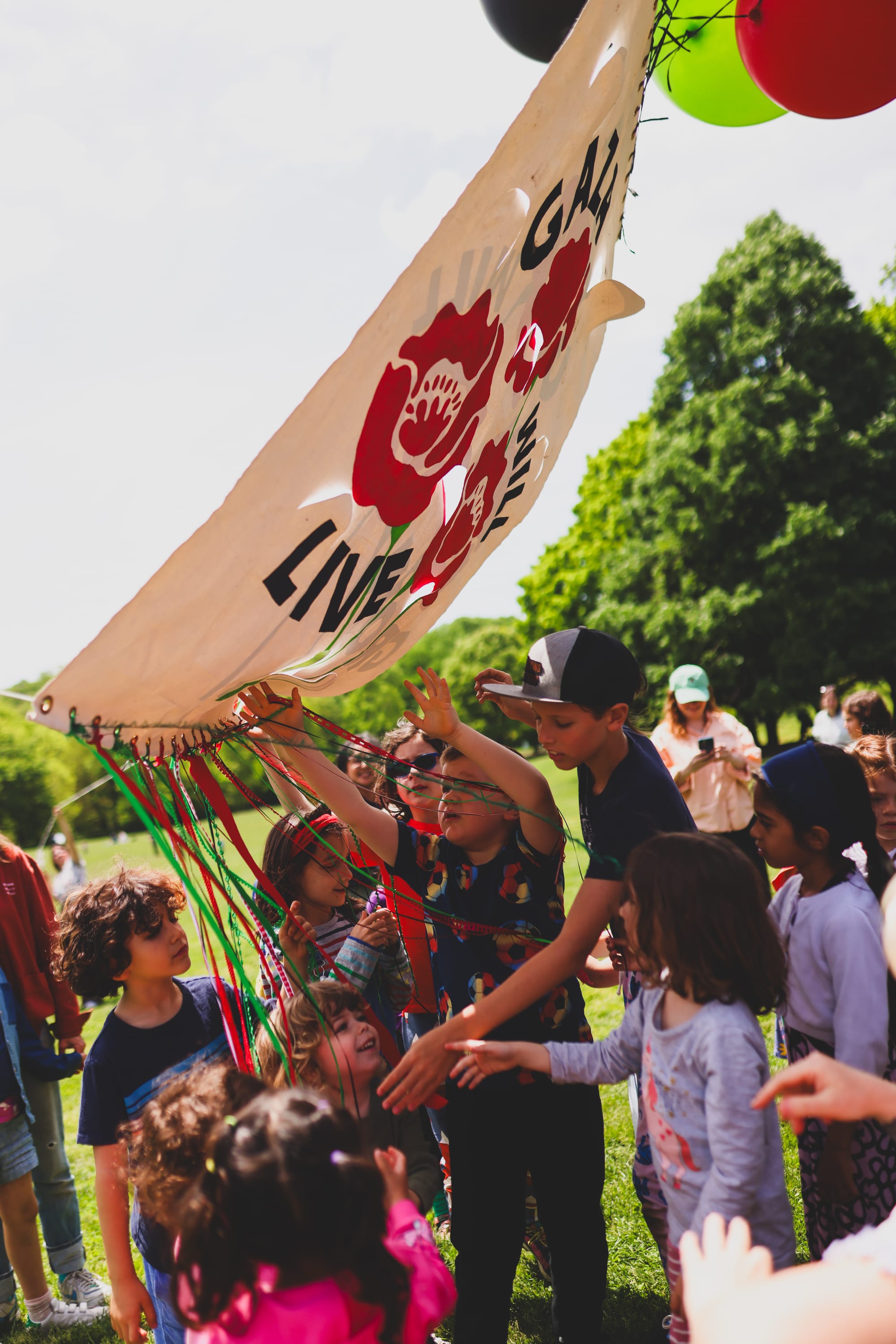 At a Mother’s Day event earlier this year for Gaza in Prospect Park, the spirit of play was front and center. Kids decorated pots and planted poppy seeds, scrawled on placards with markers and crayons, ran around, sang, and together they flew a huge kite tied to balloons that read “Gaza Will Live.” The screams of kids during their parents’ speeches were received by families not as interruptions, but as an inevitable part of the picture. Parent organizers are eminently familiar with chaos, and rather than futilely trying to control every detail of an event involving dozens of kids, the disarray operated as a beautiful lesson in making space for everyone.