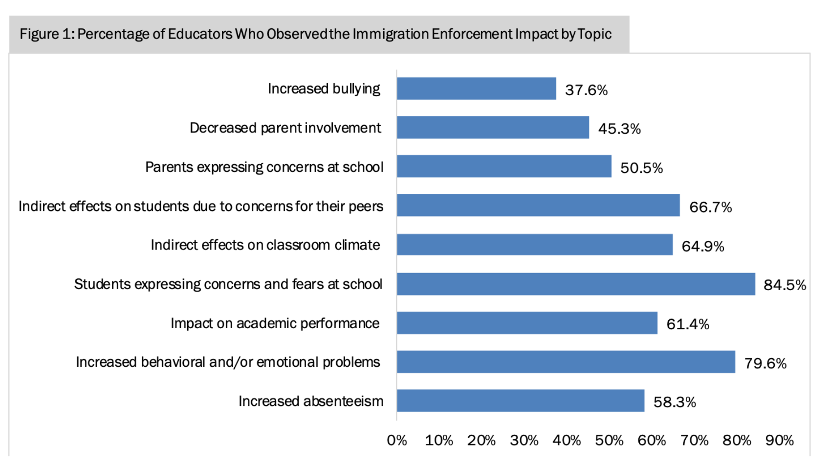 Some organizations have tried to do just that. In January 2020, the Harvard Immigration Initiative released a study featuring educator accounts of the impact of immigration enforcement on their students. The study found that roughly 80% of educators observed concern or outright fear regarding immigration enforcement as well as increased behavioral and/or emotional problems from students.