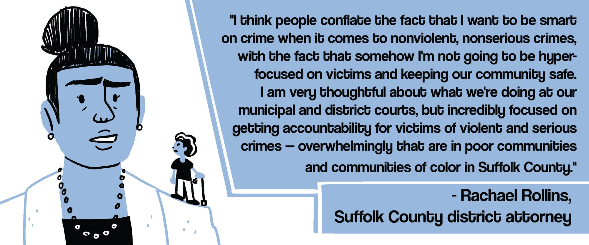 In Suffolk County, Massachusetts, DA Rachael Rollins pledged in her 2018 election campaign to decriminalize a host of nonviolent offenses including shoplifting, larceny under $250, and drug possession with intent to distribute.