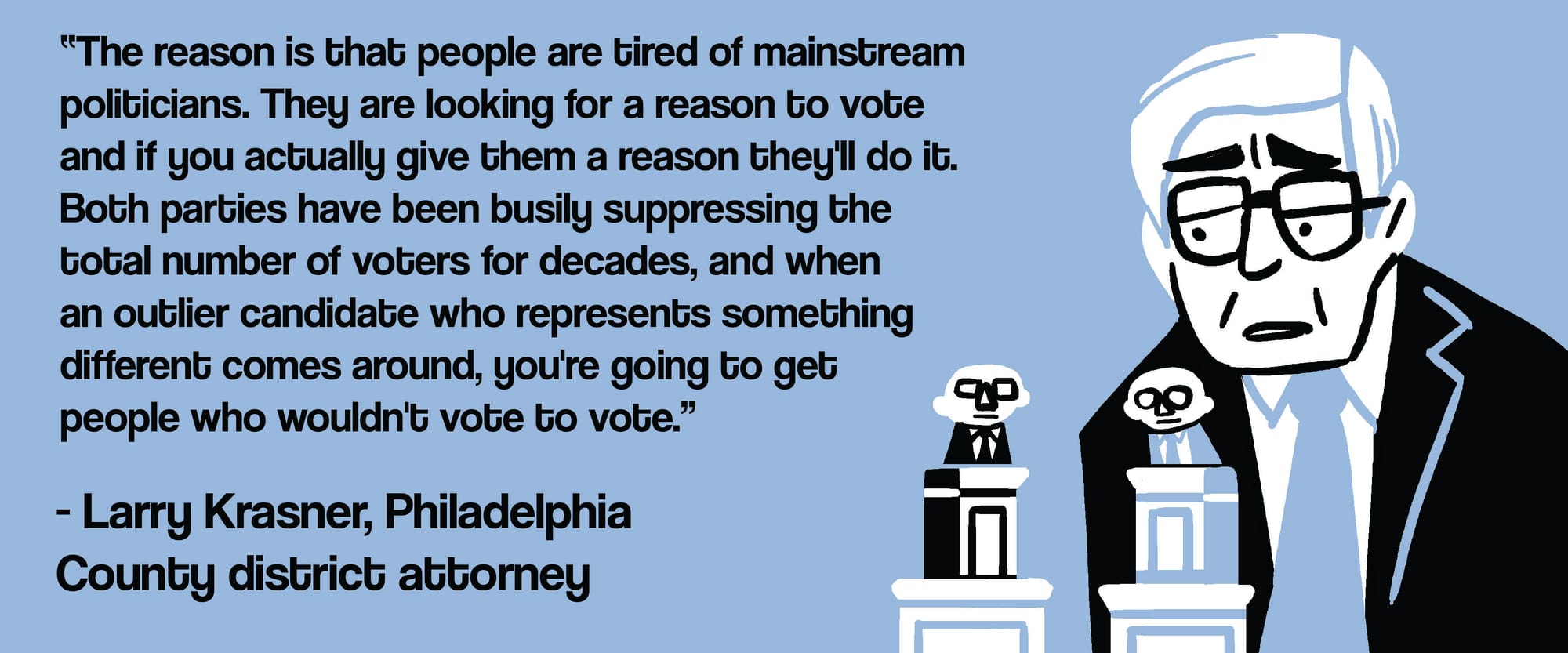 In Philadelphia County, Pennsylvania, Larry Krasner has made waves by heavily promoting diversion programs to lower incarceration rates, and promising to stop seeking cash bail for dozens of low-level charges. As part of his push for reform, he also blacklisted 29 Philadelphia police officers, labeling them “unreliable witnesses” in court due to past criminal charges and misconduct.
