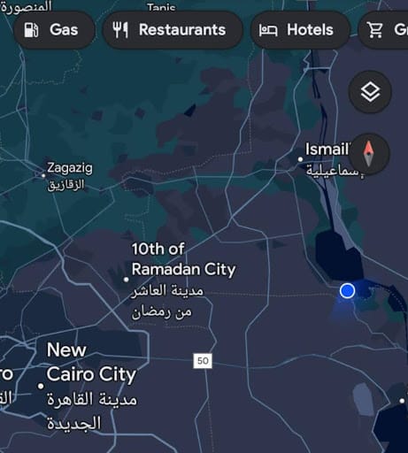 Once loaded onto a bus, Afaneh expected marchers would be taken the way they came, through each of the three checkpoints. Instead, they were driven on a long and winding route along the Suez, taking them farther and farther from Ismailia and Cairo. After a few hours, the group grew increasingly nervous. When the bus pulled over to the side of the road, people began contacting their embassy representatives, lawyers, and anyone who could help. Afaneh sent a screenshot of the bus’ location to the U.S. delegation group.