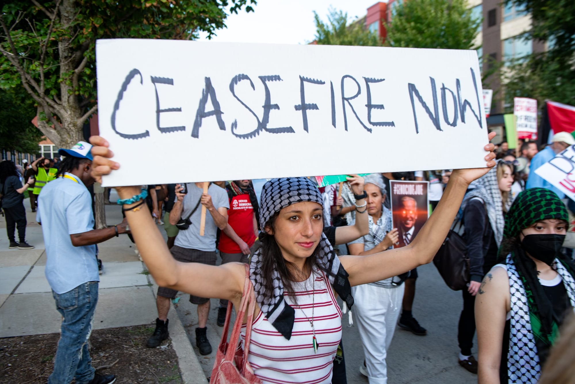 Thursday, Aug. 22, with a smaller, final march that did not get as close to the United Center where the Democratic National Convention (DNC) was being held. Still, organizers and attendees said they were pleased with the turnout and hoped that the solidarity, energy, and organization they built would push President Joe Biden and Vice President Kamala Harris to end weapons sales to Israel and force a ceasefire in Gaza. Israel’s bombing and military campaign since October has killed more than 40,000 Gazans, 70% of them women and children.