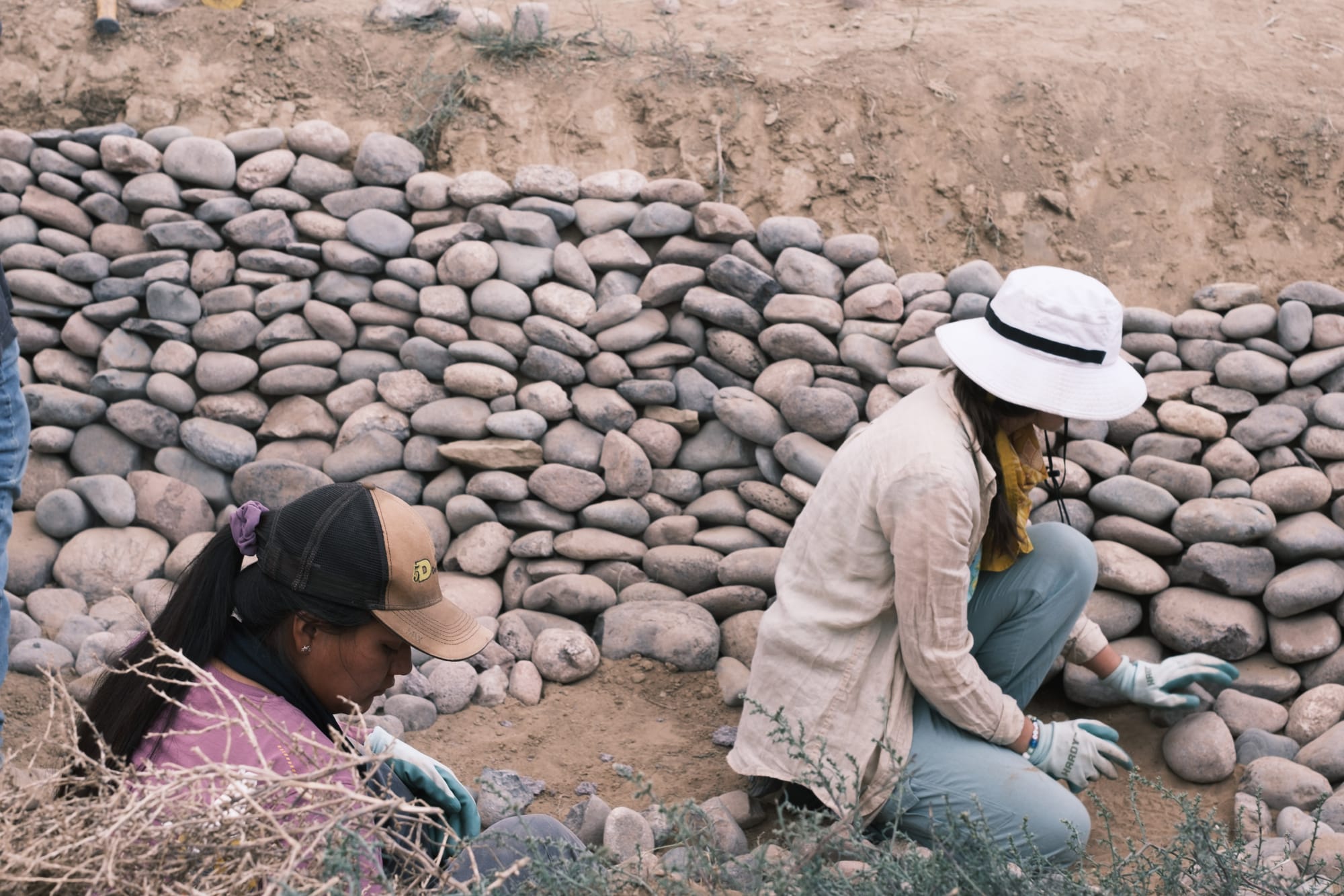 Through her organization, Indigenous Water Wisdom, Gonzales implements low-tech erosion control structures that draw on ancestral techniques and permaculture designs. These structures often look like stacks of rocks laid across desert washes in swirls, bowls, and waves, all designed to slow the flash floods that wash out main roads and carve arroyos into canyons.