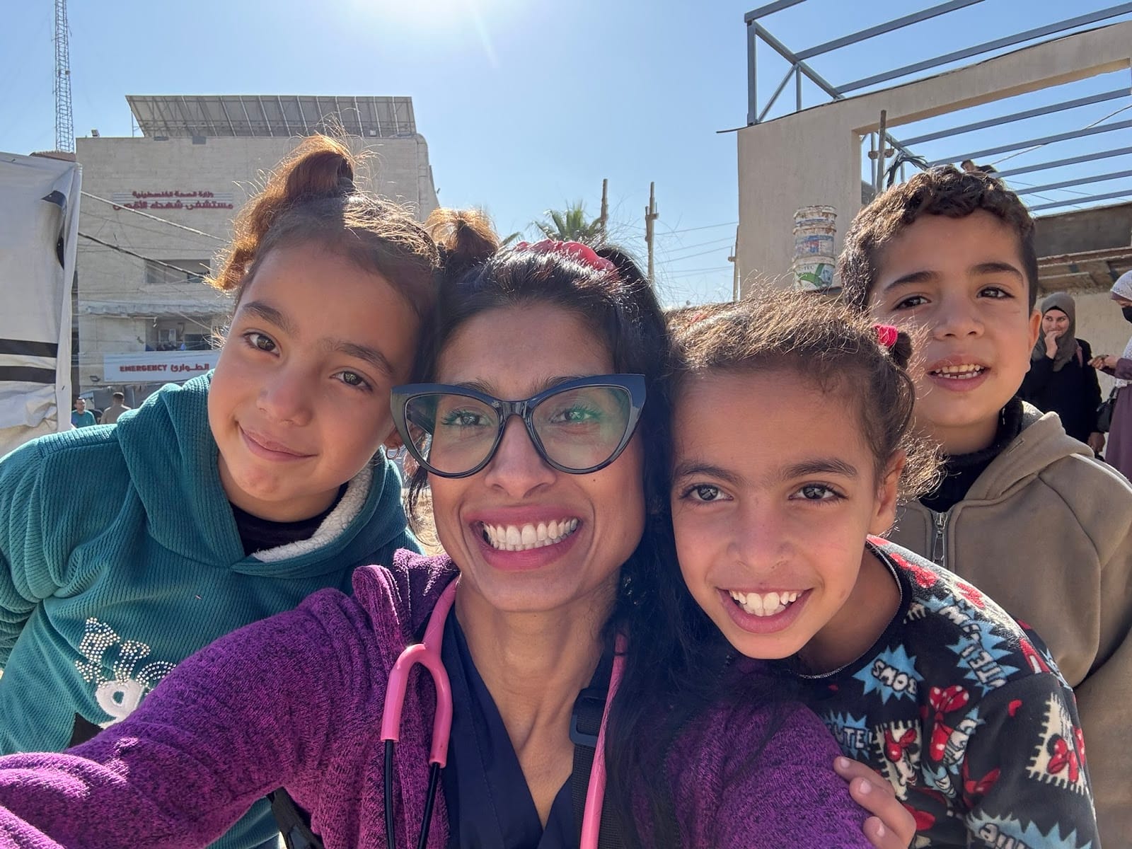 Mimi Syed: I watched the genocide livestreamed on my iPhone, but I was completely shocked by the destruction. Every single building was collapsed, there was rubble everywhere, and small children were walking around completely unattended. The most terrifying thing to me was the constant sound and proximity of munitions all around. The hospital was another level of annihilation that I never thought I would witness in my life. It was overcrowded; the temperatures were so high in August, and there was no air conditioner. And again, children without any adult supervision were walking around the hospital in groups. I was surprised by how close the munition was to the hospital, which was considered a humanitarian zone. And all of the patients were coming from “humanitarian zones” almost every time.